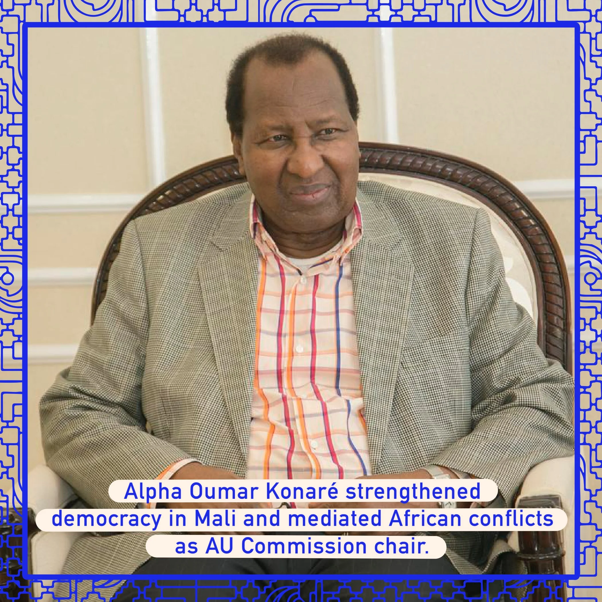 Former president of Mali (1992-2002), Alpha Oumar Konaré made history by consolidating democracy and advocating for peace in West Africa. He later chaired the African Union Commission (2003-2008), playing a major role in conflict mediation across the continent. His commitment to African integration and good governance solidified his role as a key figure in African diplomacy.