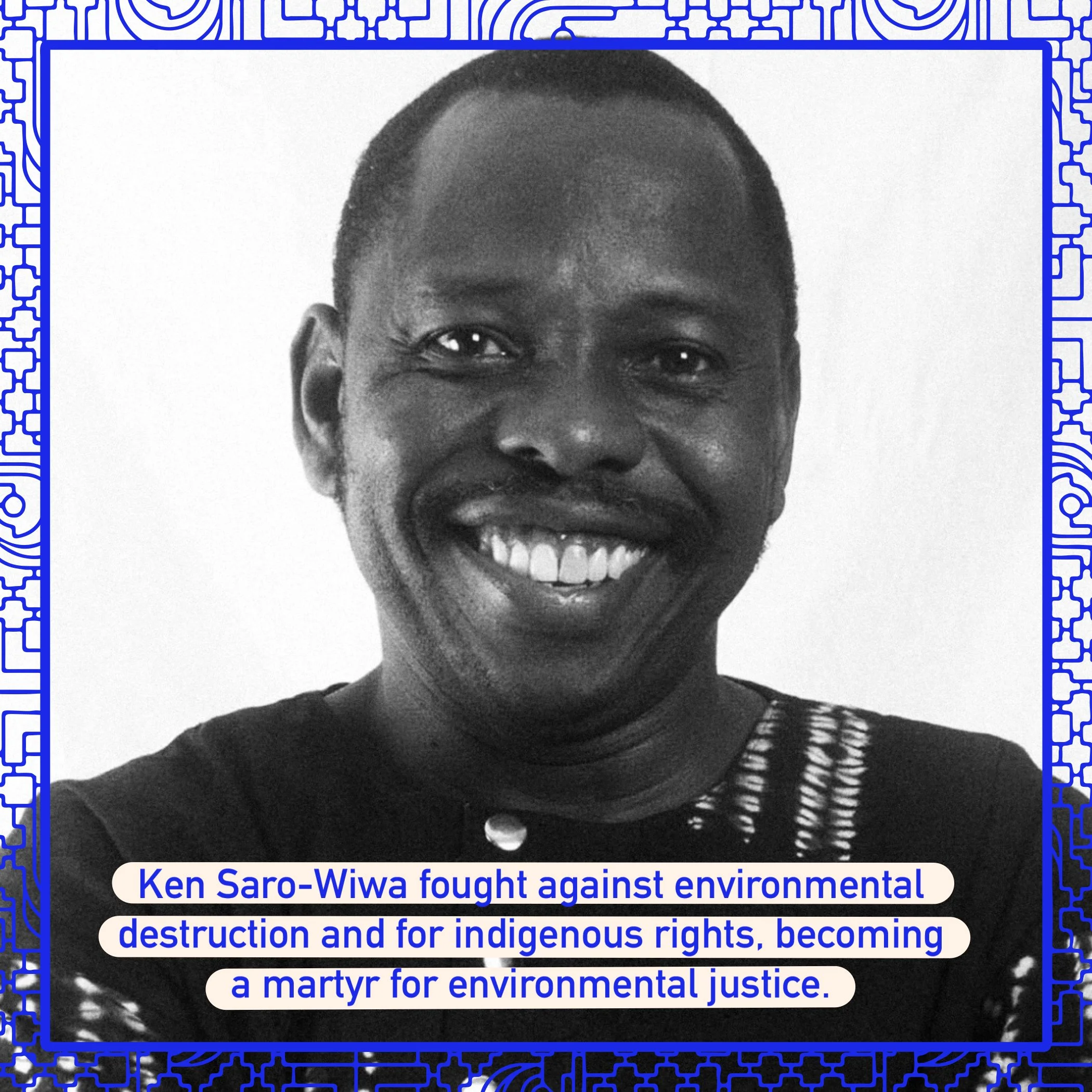 Ken Saro-Wiwa, a writer and environmental activist, Ken Saro-Wiwa denounced the pollution caused by oil extraction in the Niger Delta. A pacifist, he defended the rights of indigenous people against multinational corporations. His execution in 1995 by the Nigerian military regime sparked global outrage and strengthened the fight for environmental justice in Africa.